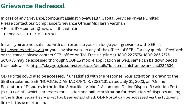 Click on the button above for Grievances Redressal and Compliance Officer details
